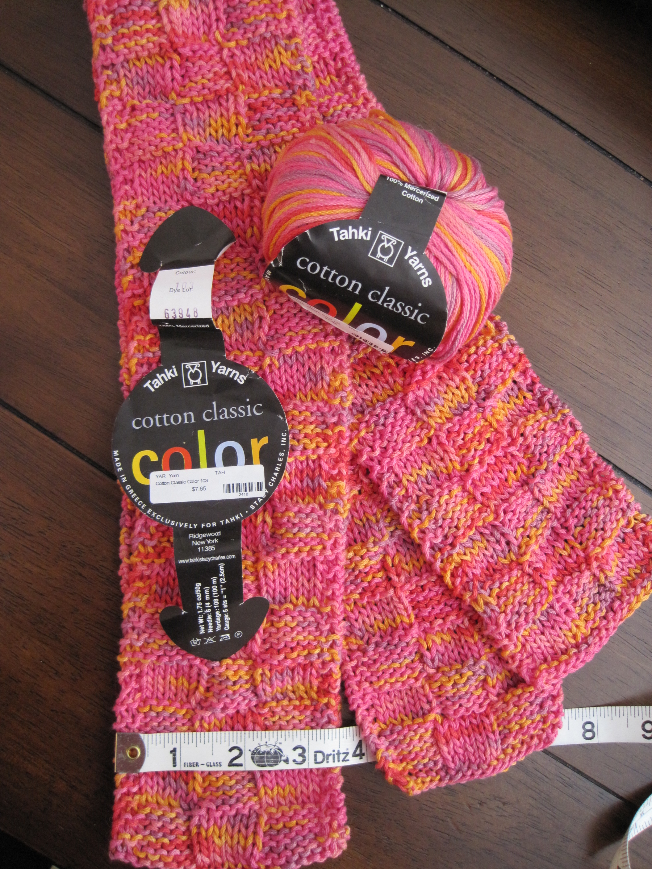 - My mom’s basketweave scarf, knit with mercerized cotton.